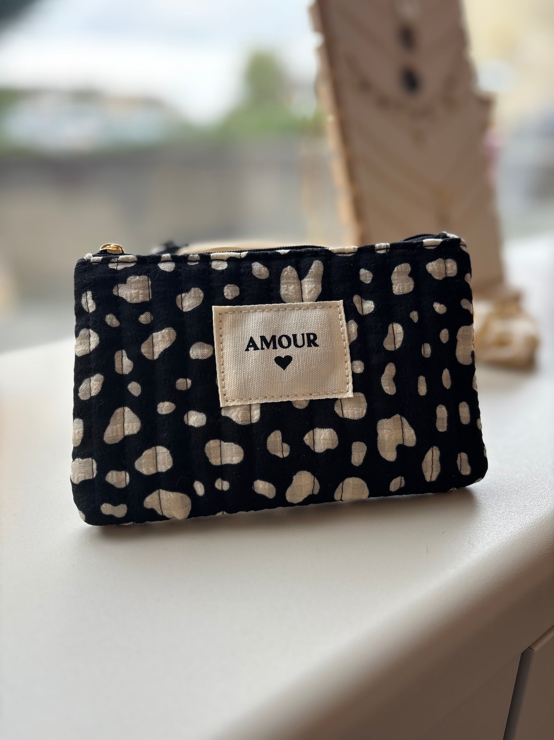 Cette jolie pochette matelassée au motif tacheté beige et noir est le cadeau idéal pour toutes les mamans chéries. À la fois douce, élégante et pratique, elle se glisse facilement dans un sac à main pour ranger maquillage, clés ou petits trésors du quotidien.